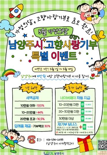 시 관계자는 “가정의 달을 맞아 마련한 이번 이벤트가 기부 참여로 이어지길 기대한다”며 “앞으로도 기부자 예우를 강화하고 답례품을 다양화해 고향사랑기부제를 활성화해 나가겠다”고 말했다.