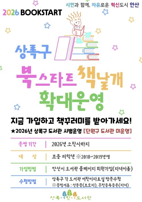 (중부시사신문) 안산시는 상록구 소재 도서관에서 운영 중인 ‘북스타트 사업’ 대상을 기존 영유아에서 초등학교 저학년 학생까지로 확대한다고 30일 밝혔다.