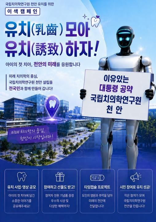 이번 캠페인은 국립치의학연구원 천안 설립이 대통령의 지역공약임에도 불구하고, 최근 공모 방식 전환 검토로 지자체 간 경쟁이 치열해짐에 따라 차별화된 유치 명분을 확보하기 위해 추진된다.