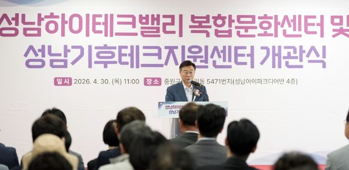 (중부시사신문) 성남시가 산업단지 내 공공지원 기능을 강화하고 근로자 복지 증진과 기후테크 산업 육성을 위해 조성한 ‘성남하이테크밸리 복합문화센터’와 ‘성남 기후테크지원센터’가 4월 30일 오전 11시 개관식을 열고 본격적인 운영에 들어갔다.