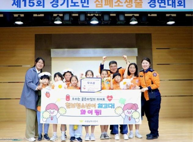 (중부시사신문) 수원시청소년청년재단 칠보청소년청년센터 청소년방과후아카데미 ‘칠보누리봄’ 소속 청소년들이 4월 28일 경기도재난소방본부가 주최하는‘제15회 경기도민 심폐소생술 경연대회’에 참가해, 청소년부 우수상을 수상하는 값진 성과를 거두었다.