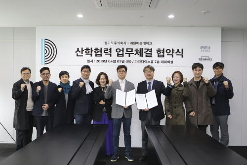 이날 협약식에는 경기도주식회사 이석훈 대표와 계원예술대학교 전영대 교무처장, 산학협력단 김남형 단장, 강윤주 교수 등 관계자 10여명이 참석했다.