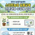 (중부시사신문) 천안시농업기술센터는 5~ 7월 ‘스마트농업 실용교육 전문과정’을 운영한다고 27일 밝혔다. 이번 교육은 농업인의 스마트팜 활용 역량을 강화하기 위해 마련됐으며, 기후변화와 농촌 고령화에 대응해 스마트농업 기술을 보급하고, 현장 적용 능력을 높일 계획이다. 교육은 △환경관리(5월 4~ 18일) △시설관리(6월 8~ 22일) △수경재배(7월 9~ 23일) 총 3개 전문과정으로, 스마트농업 현장에서 활용 가능한 실용기술을 중심으로 구성됐다. 교육은 센터 내 스마트팜 테스트베드 교육장에서 과정별로 5회씩 운영될 예정이다. 교육 신청은 과정별로 시작 10일 전부터 방문 또는 전화로 가능하며, 자세한 사항은 센터 누리집에서 확인할 수 있다. 박정수 농촌지도사는 “스마트농업은 미래 농업의 핵심 성장동력”이라며 “이번 교육이 지역 농업인의 디지털 전환 역량을 높이고, 안정적인 농업 경영 기반을 마련하는 계기가 되길 바란다”고 말했다.