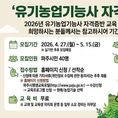 (중부시사신문) 파주시농업기술센터는 친환경농업 분야 농업 전문 인력 육성을 위한 '2026년 유기농업기능사 자격증 취득’교육생을 4월 27일부터 5월 15일까지 모집한다. 유기농업에 대한 기초 이해를 돕기 위한 ‘유기농업기능사 자격증 취득’교육은 2026년 정기기능사 3회 시험 일정에 맞추어 4월 27일부터 8월 13일까지 필기 교육과정 7회, 실기 교육과정 5회로 총 12회에 걸쳐 진행된다. 필기교육 교육생 모집은 4월 27일부터 5월 15일까지 선착순으로 진행되며, 모집인원은 총 40명이다. 파주시민이면 누구나 신청할 수 있으며, 파주시 평생교육포털을 통해 온라인으로만 신청 가능하다. 파주시 관계자는 “안전 농산물에 대한 소비자의 관심이 높아짐에 따라 유기농업에 대한 관심이 증가하고 있다”라며, “이번 교육을 통해 자격증 취득뿐만 아니라 친환경농업 전문가 육성 및 역량 강화에 힘쓰겠다”라고 말했다.
