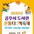 (중부시사신문) 공주시는 시민의 독서생활화를 장려하고 책 읽는 지역사회 문화를 확산하기 위해 오는 11월 1일 ‘온통다ː 책축제’를 개최한다고 밝혔다. 이번 축제는 ‘책으로 통하다’는 의미를 담아, 독서의 가치를 널리 알리고 시민이 함께 즐길 수 있는 독서문화 한마당으로 기획됐다. 제25회 전국 독후감상화 그리기대회를 비롯해 다양한 독서문화 체험행사와 공연이 함께 열린다. 체험행사로는 ▲읽지 않는 책을 교환하는 ‘네 책, 나랑 바꿀래?’ ▲26년 후의 나에게 편지를 보내는 ‘더(The) 느린엽서’ ▲콩콩수제도장과 비즈공예를 활용한 책갈피 만들기 ▲책장과 책장사이 ▲발로 만든 솜사탕 ▲삐빗! 폐건전지함 ▲뽀드득 부엌 초록지킴이 등 총 15개 프로그램이 운영된다. 또한 책을 읽고 느낀 점이나 인상 깊었던 장면을 그림으로 표현하는 ‘제25회 전국 독후감상화 그리기대회’도 함께 진행된다. 참가 대상은 6~7세 유아와 초등학생 전 학년이며, 도화지는 행사 당일 본부석에서 배부한다. 미술 도구와 돗자리는 참가자가 개별로 지참해야 한다. 박찬옥 평생학습과장은 “올해 새롭게