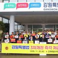 (중부시사신문) 강원특별자치도의회는 25일 오후 1시 30분 도의회 본관 앞에서 ‘강원특별법 3차 개정안’의 조속한 국회 심사를 촉구하는 결의대회를 열었다. 이번 결의대회는 개정안이 발의된 이후 국회에서 심사조차 제대로 이뤄지지 않고 있는 상황에 대한 도민들의 인내 한계와 지역 균형발전에 대한 요구가 높아진 데 따른 것이다. 강원특별법 3차 개정안은 지난해 9월 한기호 의원과 송기헌 의원이 공동 발의했으나 현재까지 단 한 차례도 행안위 법안심사소위가 개최되지 않는 등 심사 지연이 장기화되고 있는 것으로 알려졌다. 정기국회 종료가 임박한 상황에서 이번 회기 내 법안 처리를 위한 시급성도 부각되고 있다. 이날 결의대회에는 국회 앞에서 릴레이 1인 시위를 이어가고 있는 박윤미 부의장과 이한영 운영위원장을 제외한 전 도의원이 참석했다. 문관현 기획행정위원장이 낭독한 결의문에는 ▲ 강원특별법 3차 개정안의 즉각 처리 요구 ▲ 개정안이 통과될 때까지 끝까지 투쟁하겠다는 결의 ▲ 300만 강원도민의 생존권 수호하겠다는 의지가 담겼다. 도의회는 결의대회 직후 결의문을 국회에 전달할 계획이