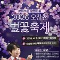 (중부시사신문) 오산문화재단은 오는 4월 3일 오후 6시 30분 오산천 야외무대(종합운동장 뒤편)에서 시민들과 함께하는 봄맞이 ‘2026 오산천 벚꽃 축제’를 개최한다. 이번 행사는 따뜻한 봄의 시작을 알리며 시민들에게 특별한 추억을 선사하기 위해 마련된 것으로, 가수 황민호의 축하 공연을 비롯해 점등식과 폭죽 퍼포먼스가 어우러져 오산천 일대를 화려한 봄밤의 분위기로 물들일 예정이다. 행사 당일에는 음악과 빛, 불꽃이 조화를 이루는 다양한 프로그램이 진행되며, 남녀노소 누구나 함께 즐길 수 있는 열린 문화행사로 시민들의 큰 호응이 기대된다. 오산문화재단 관계자는 “오산천에서 펼쳐지는 이번 축제가 시민들에게 특별한 봄밤의 추억으로 남길 바란다”며 “앞으로도 시민들이 일상 가까이에서 문화와 예술을 향유할 수 있도록 다양한 프로그램을 지속적으로 마련하겠다”고 밝혔다.