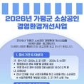 (중부시사신문) 가평군은 관내 소상공인의 지속경영 기반을 강화하기 위해 ‘2026년 가평군 소상공인 경영환경개선사업’ 대상자를 3월 6일까지 모집한다고 밝혔다. 이번 사업은 한국생산성본부와의 업무 협약을 바탕으로 추진하며, 노후 점포 환경 개선을 중심으로 실질적인 경영 여건 개선을 지원하는 데 초점을 맞췄다. 지원 항목은 △내부 인테리어 개선 △옥외광고물 교체 △CC(폐쇄회로)TV 설치 △키오스크 및 판매시점관리 시스템(POS) 기기 구매 등이다. 업소당 최대 300만원까지 지원하며, 지원 한도 초과분과 부가가치세는 신청자가 부담해야 한다. 지원 대상은 공고일 기준 가평군에서 사업자 등록 후 12개월 이상 영업 중인 소상공인이다. 사업자등록증상 개업연월일이 2025년 2월 27일까지인 경우 신청할 수 있다. 접수 기간은 2월 27일부터 3월 6일까지다. 현장 접수는 가평군소상공인연합회 사무실(가평읍 보납로 12, 구 KT&G 건물 1층)에서 진행하며, 우편 접수는 한국생산성본부 상생협력센터(서울 종로구 새문안로 5가길 32, 한국생산성본부 9층)로 하면 된다. 사업 공고문은 가평군청(분
