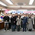 (중부시사신문) 첨단 농업의 미래를 이끌 ‘논산 스마트팜’에 22명의 젊은 농업인들이 모였다. 논산시는 13일 시청 2층 상황실에서 논산 스마트팜 청년농업인과 간담회를 개최했다. 이번 간담회는 논산 스마트팜 단지에 관한 설명과 함께 청년농업인의 의견을 청취하기 위해 마련됐으며, 부적 딸기산업 스마트팜 단지 입주예정자와 청년자립형 스마트팜 지원사업 선정자 등 청년농업인들이 함께했다. 20~40대로 구성된 청년농업인들은 스마트농업 기술과 혁신적인 농업 경영을 통해 논산 농업의 미래를 주도할 것으로 기대되고 있다. 백성현 논산시장은 “스마트팜과 첨단농업 기술 도입을 통해 지역 농업의 경쟁력을 높이고 지속가능한 생산 체계를 구축해 나가는 것이 매우 중요하다”며 “여러분의 도전과 열정이 논산 농업의 미래를 밝히는 큰 힘이 될 것”이라고 말했다. 또한, “시에서도 청년농업인의 안정적 정착을 위해 주거 지원과 기술교육 등 종합적인 지원을 아끼지 않겠다”며 “함께 힘을 모아 스마트농업 기반의 고품질 원예 산업을 발전시키고, 청년 일자리 창출과 지역 인구 유입까지 이어지는 논산 농업의 새로운 미래를 만