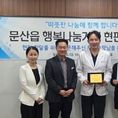(중부시사신문) 파주시 문산읍은 지난 10일, 14년간 지역 내 독거어르신 등 취약계층을 위해 꾸준한 나눔을 실천해 온 ‘센트럴제일안과’를 문산읍 행복나눔가게 15호점으로 지정하고 현판 및 감사패를 전달했다. 행복나눔가게 사업은 지역 내 사업체가 정기적인 기부를 통해 취약계층을 지원하는 문산읍의 민관 협력 나눔 사업이다. 이번 15호점 지정은 오랜 기간 이어진 각별한 인연과 순수한 나눔의 뜻이 더해져 지역사회에 큰 감동을 전하고 있다. 장기 후원의 배경에는 임동권 대표원장의 남다른 지역 사랑이 자리하고 있다. 임 원장은 과거 문산제일안과 원장으로 재직하며 2016년부터 2020년까지 문산읍 지역사회보장협의체 위원으로 활동했고, 지역 내 복지 사각지대 발굴에 앞장섰다. 현장에서 직접 마주한 독거어르신들의 어려운 현실을 깊이 이해한 그는, 운정으로 이전해 거리가 멀어졌음에도 후원을 멈추지 않았다. 임 원장은 2012년 6월부터 현재까지 14년간 매월 햄·참치 선물 꾸러미 등 식료품을 정기적으로 후원해 왔으며, 누적 후원 수량은 1만여 개에 달한다. 임동권 센트럴제일안과 대표원장은 “문산제일안과 시절 문산읍 주민들께