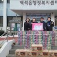 (중부시사신문) 백석읍 목민교회가 23일 지역 내 어려운 이웃들을 돕기 위해 컵라면 100박스를 백석읍에 기부했다. 이번 기부는 생활 여건이 어려운 취약계층이 겨울철을 보다 따뜻하게 보낼 수 있도록 돕기 위한 나눔 실천의 일환으로 마련됐다. 전달된 컵라면은 백석읍행정복지센터를 통해 도움이 필요한 가구에 순차적으로 배부될 예정이다. 김 광 목사는 “작은 정성이지만 이웃들에게 실질적인 도움이 되길 바라는 마음으로 준비했다”며 “앞으로도 지역사회와 함께하는 나눔을 지속해 나가겠다”고 전했다. 백승호 백석읍장은 “지역 주민을 위한 따뜻한 나눔을 실천해 주신 목민교회에 감사드린다”며 “기부 물품은 꼭 필요한 이웃들에게 정성껏 전달하겠다”고 말했다. 한편, 백석읍에서는 겨울철을 맞아 지역 내 종교단체와 민간기관의 기부가 이어지며, 나눔을 통한 따뜻한 지역 공동체 조성이 확산되고 있다.