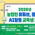 (중부시사신문) 안성시농업기술센터는 지역 농업인의 디지털 매체 활용 능력을 높이고 농산물 홍보 역량을 강화하기 위해 ‘2026년 농업인 유튜브·블로그·AI 활용 교육’ 교육생을 모집한다. 이번 교육은 블로그 운영뿐만 아니라 인공지능(AI)과 유튜브 동영상을 접목한 실전형 교육 과정으로 구성됐다. 안성시농업기술센터는 오는 2월 24일부터 3월 18일까지 매주 화·수·목요일 총 11회에 걸쳐 정보화교육장에서 전문 교육을 실시한다. 교육 내용은 블로그 만들기 및 AI를 활용한 게시물 작성 방법, 유튜브 채널 개설과 프로필 작성, 스마트폰을 활용한 동영상 촬영 및 편집 기술 등 실무 위주로 편성됐다. 교육 신청은 2월 2일부터 2월 20일까지 안성시청 홈페이지를 통한 온라인 접수 또는 농업지도과 방문 접수로 가능하다. 모집 인원은 10명 내외이며, 신청 시 교육참여신청서와 농업경영체등록확인서를 제출해야 한다. 합격자는 선정 후 문자로 개별 통보되며, 수료를 위해서는 전체 과정의 80% 이상 출석이 필요하다. 안성시농업기술센터 관계자는 “농업인이 직접 AI와 유튜브를 활용하여 고품질의 홍보 콘텐츠를 생산함으로써 농가 브