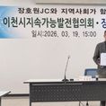 (중부시사신문) 이천시지속가능발전협의회는 지난 3월 19일, 장호원읍행정복지센터 대회의실에서 장호원청년회의소와 지역사회 청년활동의 리더십 과제 협업을 위한 업무협약(MOU)을 체결했다고 밝혔다. 이날 협약식에는 협의회 측의 정철화 상임회장을 비롯한 박현남 공동회장, 방복길 운영위원장, 임성아 사무국장, 이상용 위원 등 지역위원이 참석했으며, 장호원JC 측에서는 서우진 회장을 비롯한 남윤일 특우회장, 사무국장과 직전 회장 등이 참석해 양 단체의 협업을 자축하는 한편, 남해원 장호원읍장도 참석해 양 단체의 협업 의지를 격려했다. 이번 협약으로, 협의회와 업무협약을 체결한 기관·단체는 총 56개로 늘어나 지역사회 내 지속가능발전 실현을 위한 민관 협력 기반이 한층 강화될 것으로 기대된다. 협의회는 올해 초 제12기 152명의 위원으로 구성되어 지구환경 보호와 기후위기 대응, 탄소중립활동 전개, 사회적 약자 동행, 지역사회 공동체 협업 네트워크화를 목표로, ▲더 좋은 나눔 냉장고 운영 ▲지역사회 지속가능발전목표 제시 ▲나의 지속가능발전목표(SDGs) 실천 사례 챌린지 ▲폐건전지 수거 활동 등을 주 활동으로 전개하며 각