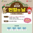 (중부시사신문) 금산군은 올해 헌혈 참여를 독려하기 위해 지역 내에서 수혈용 헌혈을 하면 금산사랑상품권 1만 원을 지급한다. 헌혈은 만 16~69세 주민으로 몸무게가 남성 50kg, 여성 45kg 이상인 경우 할 수 있으며 신분증을 지참하고 사랑의 헌혈 버스에 방문해서 참여하면 된다. 상품권 외에도 헌혈 혜택으로 혈액을 통해 검사가 가능한 혈액형, B형·C형 간염 바이러스, 간 기능 검사 등 10개 항목 검사를 받을 수 있다. 또한, 수혈받을 경우 헌혈증서를 제시해 수혈 비용을 보상받을 수 있고 4시간의 봉사 시간도 인정받을 수 있다. 군은 분기별 1회 세 번째 금요일에 금산군청 주차장에서 사랑의 헌혈 버스를 운영한다. 첫 일정은 1월 16일 예정됐으며 이후 4월 17일, 7월 17일, 10월 16일 진행될 예정이다. 운영 시간은 오전 10시부터 오후 4시까지며 오전 11시 30분부터 오후 1시까지는 점심시간이다. 군 관계자는 “우리도 언제든 수혈받을 상황에 처할 수 있다”며 “건강할 때 헌혈하는 것은 나와 사랑하는 가족에서 더 나아가 우리 모두를 위한 사랑의