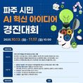(중부시사신문) 파주시는 10월 13일부터 11월 17일까지 시민이 직접 참여하는 ‘파주 시민 인공지능(AI) 혁신 아이디어 경진대회’를 개최한다고 밝혔다. 이번 경진대회는 대한민국 국민 누구나 참여 가능하며, 인공지능(AI)을 활용해 행정과 시민 생활 속 다양한 문제를 해결할 수 있는 창의적 아이디어를 발굴하기 위한 시민 참여형 공모전으로, ‘인공지능(AI)과 함께하는 시민 중심의 파주, 인공지능(AI) 선도 도시’ 구현을 목표로 하고 있다. 개인 또는 팀 단위로 참가할 수 있으며, 참가자는 지정 주제(① 출판단지 활성화, ② 재해·재난 관리, ③ 동물 보호, ④ 도로 안전, ⑤ 교통 질서) 또는 자율 주제(파주시 현안 해결을 위한 생성형 인공지능(AI) 서비스 개발) 중 하나를 선택해 아이디어를 제출하면 된다. 예선은 온라인 방식으로 진행되며, 심사위원 평가 70%와 참가자 투표 30%를 합산해 상위 10개 팀이 본선에 진출한다. 본선은 현장 발표 형식으로 열리며, 창의성, 실현 가능성, 적합성, 인공지능(AI) 기술 활용성 등을 종합 평가해 최종 순위가 결정된다. 총 상금은 800만 원 규모로
