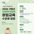 (중부시사신문) 가평군이 사회연대경제 분야 창업 인재 발굴에 나선다. 군은 ‘2026년 사회연대경제 창업교육’ 수강생을 이달 9일부터 23일까지 각 과정별로 20명씩 모집한다고 10일 밝혔다. 이번 창업교육은 사회연대경제에 관심 있는 가평군민을 대상으로 하며, 3월 21일부터 4월 17일까지 총 8회에 걸쳐 진행된다. 교육과정은 기초‧심화 교육과 멘토링, 컨설팅까지 단계별로 구성했다. 수강생은 사회연대경제에 대한 이해를 바탕으로 사업계획 수립 역량을 높이고, 공모사업 신청에 필요한 실무 중심 멘토링과 컨설팅을 받게 된다. 기초·심화 과정은 3월 21일부터 28일까지 진행된다. 사회연대경제의 조직유형에 대한 이해와 지역사회 문제 해결을 위한 다양한 사례를 중심으로 심도 있는 교육이 이뤄진다. 이후 4월 6일부터 17일까지 운영되는 멘토링 과정은 기초·심화 교육 수료자 중 우수개인 및 단체를 대상으로 진행된다. 이 과정에서는 비즈니스모델 구체화, 세부 사업계획서 작성 및 검토 등을 중심으로 각 분야별 멘토와 컨설턴트가 전담해 맞춤형 컨설팅을 제공하는 등 실질적인 창업 역량 강화를 지원할 계획이다. 또한 전년도 창업