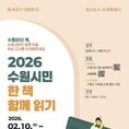 (중부시사신문) 수원시도서관이 ‘2026 수원시민 한 책 함께 읽기’ 올해의 책 후보 도서를 2월 18일까지 추천받는다. 수원시민 누구나 추천할 수 있다. 시민 주도형 독서 활동인 수원시민 한 책 함께 읽기는 올해의 책을 선정하고, 공연·강연·독서프로그램·체험 등 연계 프로그램을 운영해 시민들이 선정 도서를 함께 읽고 생각을 나누는 시민 참여 독서 운동이다. 시민이 후보로 추천한 일반 도서와 어린이도서 중 심사와 시민 투표를 거쳐 함께 읽을 올해의 책을 일반 도서 2권, 어린이 도서 2권, 수원의 작가 도서 1권 선정한다. 수원시도서관 자료실 내에 ‘올해의 책’ 코너도 운영할 예정이다. 수원시도서관 홈페이지와 시정 참여 플랫폼 새빛톡톡에서 18일까지 추천할 수 있다. 2월 15일까지 수원시도서관에 방문해 추천할 수도 있다. 올해의 책 선정 기준은 ▲현존하는 국내 작가 작품 중 시중에서 구하기 쉬운 도서 ▲책 읽기의 즐거움과 독서의 유익성을 알릴 수 있는 도서 ▲교훈과 감동을 주는 도서 ▲독서토론 문화 활성화에 적합한 도서 다양한 독서문화 프로그램 기획·운영에 적합한 도서 ▲발간된 지 10년 이내 도