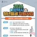 (중부시사신문) 평택시는 관내 청년의 주거비 부담 완화와 사회진입 지원을 위해 ‘평택시 청년 월세 지원’사업 신규 대상자를 모집한다. 이번 사업은 선정된 청년 1인 가구에 월 20만 원의 월세를 최대 12개월간 지원하는 내용으로, 4월 6일부터 17일까지 주소지의 읍면동 행정복지센터로 방문 신청할 수 있다. 지원 대상은 공고일 기준으로 임차보증금 9천만 원 이하, 월세 50만 원 이하(관리비 제외) 및 기준중위소득 120% 이하(1인 월 307만 원 이하)의 관내 무주택 청년 1인 가구이다. 단, 국민기초생활수급자 및 한국토지주택공사(LH), 경기주택도시공사(GH)의 행복주택․청년매입임대주택 입주자, 국토교통부 청년월세 한시 특별지원 참여자 등 공공 주거지원 중복수혜 대상자는 참여가 제한된다.