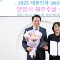 (중부시사신문) 안양시가 ‘제15회 2025 대한민국 SNS 대상’ 기초지방자치단체 시 부문에서 최우수상을 수상했다. (사)한국소셜콘텐츠진흥협회가 주최하고 과학기술정보통신부 등이 후원하는 ‘대한민국 SNS 대상’은 소셜네트워크서비스(SNS) 활용 현황을 종합 평가해 시민과 활발히 소통하는 기관에 수여하는 국내 최고 권위의 상이다. 평가는 ▲정량평가 ▲외부 심사위원 평가 ▲내부 전문가 평가 ▲사용자 투표의 합산으로 이뤄지며, 안양시는 전 분야에서 높은 평가를 받았다. 안양시는 블로그・인스타그램・페이스북・X(구 트위터)・카카오톡・유튜브 6개 채널을 통해 신속하고 다양한 시정 소식을 전달하며 시민들과 활발히 소통하고 있다. 단순한 정보전달을 넘어 시민에게 유용한 정보를 효과적으로 전달하기 위해 콘텐츠 품질을 향상하고, 재미에 공감을 더한 감각적인 콘텐츠로 시민들의 큰 호응을 얻었다. 특히 드론을 활용한 ‘하늘에서 본 안양’, 안양의 볼거리와 즐길거리를 소개하는 ‘안양을 안양?’, ‘안슐랭 가이드’ 등 안양시만의 차별화된 기획 영상, 흥미 유발형 웹툰 ‘포동툰’, ‘SNS 시민기자단’의 시민참