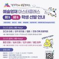 (중부시사신문) 경기도교육청이 미래 예술 인재 성장을 지원하는 전문 예술영재교육 프로그램인 ‘2026 예술영재 마스터 클래스 80·60-hour’참여 학생을 오는 26일까지 모집한다. ‘예술영재 마스터 클래스’는 ‘경기학교예술창작소’가 운영하는 경기형 예술영재교육 프로그램으로, 전문 예술가와 함께 학생의 예술적 잠재력을 발굴하고 진로 성장을 지원하는 맞춤형 교육과정이다. 특히 올해는 기존 60시간 과정에 더해 창작 중심의 80시간 심화 과정을 신설했다. 심화 과정은 아이디어 기획부터 제작, 발표의 모든 과정을 경험하며 작품 완성도를 높이도록 설계했다. 覰-hour 과정’은 ▲미디어아트 ▲창작뮤지컬 ▲조형·건축 프로젝트 ▲웹툰 등 융합예술 부문으로, ‘60-hour 과정’은 ▲평면조형 ▲입체 조형 ▲도자공예 ▲밴드 합주 등 실기 중심 창작 프로그램으로 구성·운영한다. 모든 과정은 마스터·수석강사 2인 체제로 학생 맞춤형 지도 방식으로 운영한다. 또한 ▲주제 중심 탐구 활동 ▲과정 중심 창작 과정 기록 ▲예술 진로 상담 ▲창작발표회 참여 등 예술가로 성장하기 위한 통합적 교육 경험을 제공한다. &nbs