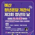 (중부시사신문) 예산군은 오는 10월 27일 오후 1시 30분, 예산읍 주교리에 위치한 청년거점공간 ‘예산청년온담’에서 개관식과 제3회 청년의 날 기념행사를 개최한다고 밝혔다. 이번 행사는 청년 인구 감소와 지역 소멸 위기에 대응하기 위해 조성된 청년 거점공간의 개관을 기념하기 위해 마련됐으며, 당초 법정기념일(9월 셋째 주 토요일)에 예정됐던 청년의 날 행사가 수해로 연기됨에 따라 두 행사를 함께 진행한다. 행사는 식전공연을 시작으로 △개관식 △청년의 날 기념식 △청년특강 순으로 진행되며, 지역 청년들이 대거 참석할 예정이다. ‘예산청년온담’은 청년 전용 복합공간으로, 연면적 2,092.96㎡, 지하 1층·지상 2층 규모로 조성됐으며, 내부에는 북카페, 공유오피스, 스터디룸, 강의실, 공유주방 등 다양한 공간이 마련돼 있어 청년들의 창업·학습·휴식·소통이 어우러지는 열린 플랫폼으로 운영될 예정이다. 특히 이번 행사에는 서울대학교병원 강남센터 정신건강의학과 윤대현 교수가 초청돼 ‘청년, 단단한 멘탈로 나아가다 – 불안을 용기로 바꾸는 마음 근육 키우기’를 주제로 특강을 진행하며, 윤 교수는 청년들이