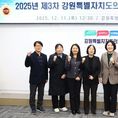 (중부시사신문) 강원특별자치도의회는 12월 11일 오후 12시 30분, 도의회 세미나실에서 '2025년도 제3차 강원특별자치도의회 입법평가위원회' 를 개최했다. 이날 회의에는 강원특별자치도의회 입법평가위원회 임미선 위원장을 비롯한 도의원, 외부 전문가(교수, 변호사) 등 총 10명의 위원이 참석했으며, 전문성과 객관성을 바탕으로 2025년 하반기 입법평가 대상 강원특별자치도 조례 36건에 대한 심의 및 의결을 진행했다. 위원회는 '강원특별자치도 입법평가에 관한 조례' 제4조에 따라 입법의 근거 및 적법성, 조례의 실효성, 조례 지원 내용의 적정성 등 6가지의 평가 기준을 토대로 조례의 운영 실태와 입법 목적 달성 여부를 점검하고, 예산과 사업 현황 등 자치입법의 실효성 확보를 종합적으로 살펴 조례의 정비 방향을 논의했다. 위원회의 심의결과, 정상추진 2건, 심화정비 17건, 일반정비 16건, 폐지필요 1건을 최종 의결했으며, 이 중 21건은 집행기관의 조속한 사업 추진 이행을 독려하는 의견을 제시했다. 이번 평가 결과는 '26년 1월 중 도의회 상임위원회 및 집행기관 소관부서에 전달하여 조례 개정