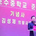 (중부시사신문) 의왕시 백운밸리 지역에 신설된 백운호수중학교의 준공식이 24일 백운호수중학교 체육관에서 개최됐다. 의왕백운프로젝트금융투자(주)(의왕백운PFV(주)) 주최로 열린 이날 준공식에는 김성제 의왕시장, 임태희 경기도 교육감, 김학기 의왕시의회 의장과 도·시의원, 의왕백운피에프브이(주) 김양묵 대표이사, 의왕백운밸리에이엠시(주) 이성훈 대표이사 등 주요 내빈과 지역주민 400여 명이 참석해 자리를 빛냈다. 이번 준공식은 학교 설립을 위해 힘써 온 관계자와 지역 주민들이 한 자리에 모여 그동안의 결실을 함께 나누고 축하하는 뜻깊은 행사로 마련됐다. 의왕시 백운밸리 일대는 주거단지 조성과 함께 인구가 지속적으로 증가하고 있는 지역으로, 그간 중학교 부재에 따른 학생들의 원거리 통학 문제가 꾸준히 제기돼 왔다. 이에, 시는 ‘중학교 신설’이라는 지역 숙원사업 해결을 위해 다각적인 방안을 검토해 왔으며, 2023년 11월 의왕시·군포의왕교육지원청·의왕백운피에프브이(주) 간 3자 업무협약을 체결함으로써 학교 설립이 본격 추진됐다. 협약을 통해 시에서는 백운호수 초등학교 인접 유치원 부지를