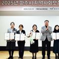 (중부시사신문) 파주시는 지난 3일, ‘지혜의 숲’대회의실에서 '2025년 지역사회보장협의체 성과공유회’를 개최했다. 이번 행사에는 대표협의체, 실무협의체, 분과위원, 읍면동 협의체 위원 등 150여 명이 참석했으며, 공공위원장 김경일 시장과 민간위원장 이보경 위원장이 공동으로 주관했다. 올해 성과공유회는 ‘함께라서 빛났던 2025년, 반짝이며 나아갈 2026년’을 주제로, 한 해 동안 지역 복지를 위해 헌신한 협의체 활동을 돌아보고, 현장의 성과를 확산하기 위한 취지로 마련됐다. 행사 전 참여자들이 작성한 붙임쪽지는 행사장 앞 성탄절 나무에 장식되어, 각자의 바람과 격려가 하나의 공동체적 상징으로 모아졌다. 성탄절 나무 쪽지 걸기 시연회는 올 한 해 서로 간에 다져온 협력의 의미를 되새기고, 다가오는 2026년을 향한 희망을 함께 공유하는 시간으로 이어졌다. 1부 행사에서는 협의체 위원 소개와 함께 유공자 24명 및 특화사업 우수 읍면동 3개소에 대한 표창이 진행됐으며, 공동위원장 두 명의 기념사를 통해 한 해의 활동을 마무리하는 알림말(메시지)이 전해졌다. 이어 활동 영상 상영, 성탄절 나무 점
