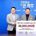 (중부시사신문) 파주시는 지난 31일 신세계사이먼 파주 프리미엄 아울렛으로부터 관내 저소득 취약계층 지원을 위한 성금 2,000만 원을 기탁 받았다고 밝혔다. 이날 전달식에는 신세계사이먼 점포 운영 담당 박지윤 상무와 신세계사이먼 파주 프리미엄 아울렛 장윤석 점장을 비롯한 관계자들이 참석했다. 전달된 성금은 경기사회복지공동모금회를 통해 경제적 어려움을 겪고 있는 저소득 주민들의 기초생활 안정과 다양한 복지사업을 위해 사용될 예정이다. 박지윤 상무는 "2026년 새해를 맞아 어려운 이웃들에게 작은 도움이 되길 바란다”라며 “앞으로도 다양한 사회공헌활동을 통해 나눔의 가치를 실천하고, 지역사회와의 상생 발전을 위해 지속적으로 노력하겠다”라고 말했다. 김경일 파주시장은 “신세계사이먼 파주 프리미엄 아울렛의 따뜻한 성금에 감사드리며, 관내 어려운 이웃들이 새해를 시작하는 데 큰 힘이 될 것”이라며 “전달받은 성금은 도움이 필요한 곳에 소중히 사용하겠다”라고 전했다. 한편, 신세계사이먼 파주 프리미엄 아울렛은 2011년 개점한 이후 매년 소외계층 지원, 지역사회 문화행사 및 유관단체 후원 등 적극적인 사회