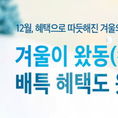 (중부시사신문) 경기도와 경기도주식회사가 공동 운영하는 경기도 공공배달앱 배달특급이 겨울을 맞아 12월 한 달간 ‘겨울이왔동(冬)’ 소비자 할인 프로모션을 진행한다. ‘겨울이왔동(冬)’ 소비자 할인 이벤트는 ‘통 큰 세일’ 프로모션 종료 등으로 아쉬움이 남는 소비자들의 편익을 증대하기 위해 마련했다. 배달 특급 전체 회원, 전체 서비스 지역을 대상으로 1만2천원 주문에 사용가능한 3천원 할인 쿠폰을 예산 소진시까지 1일 1인 1회 지급한다. 한편 배달특급의 모든 이벤트는 해당 상단 배너 기능을 통해 확인 가능하며, 지역에 따라 할인 조건과 금액이 달라질 수 있어 사전 확인이 필요하다.