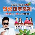 (중부시사신문) 안성시대추연합회 주최로 하는 안성대추 직거래장터가 오는 24일, 25일 이틀동안 내혜홀광장에서 진행된다. 이번 행사는 안성시대추연합회와 안성시가 주관하여 진행하는 직거래장터 행사로 약 25개의 판매부스를 운영하고 대추가요제 등 각종 공연이 마련될 예정이다. 관내 대표 임산물로 부각되고 있는 안성대추는 품질과 맛이 훌륭하며 작년에는 대한민국 대표과일 선발대회에서 최우수상과 장려상을 수상하면서 안성대추의 저력을 보여주었다. 이번 행사에서는 첫째날 개회식을 시작으로 노래자랑, 경품행사 및 공연을 진행하여 단순 판매부스 운영뿐만 아니라 즐길거리가 제공될 예정이다. 안성시는 “이번 행사는 많은 안성 시민들에게 안성대추의 우수성과 맛을 전파하기 위한 것으로, 나아가 관내 임업인들에게 판로를 다양하게 제공할 수 있도록 안성의 임업 발전에 더욱더 최선을 다하겠다”고 전했다.