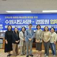 (중부시사신문) 수원시도서관과 사회복지법인 경동원은 14일 경동원에서 ‘교류 협력을 위한 업무협약’을 체결했다. 공공도서관과 지역 복지기관이 함께 어린이의 독서 접근성을 높이고, 독서 친화적 성장환경을 조성하기 위한 협약이다. 수원시도서관은 경동원 어린이를 위한 독서 활동 프로그램과 도서 기부, 독서 서비스, 공연 등 다양한 독서문화 진흥 사업을 추진할 계획이다. 두 기관은 지역사회 어린이 보육 기관과 연계해 창의력과 표현력을 키울 수 있는 독서교육 프로그램을 운영하고, 교육·문화 협력을 위한 지속 가능한 교류 체계를 이어가기로 했다. ‘아이들을 위한 스토리텔링과 책놀이’ 프로그램을 10월 14일부터 11월 4일까지 매주 화요일 경동원에서 진행한다. 스토리텔링과 책놀이로 어린이의 창의력 발달을 돕고, 교사의 소통 능력을 높이는 내용으로 구성됐다. 이날 협약식에는 김병수 도서관사업소장, 신승주 경동원장, 이명옥 선경도서관장 등이 참석했다. 김병수 도서관사업소장은 “이번 협약은 어린이들의 독서 환경 격차를 줄이고, 누구나 동등하게 독서문화의 혜택을 누리도록 하기 위한 공동의 약속”이라며 “