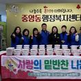 (중부시사신문) 오산시 중앙동행정복지센터는 지난 12일, 바르게살기운동 오산시중앙동위원회가 관내 저소득 계층을 위해 직접 만든 밑반찬 30인분(제육볶음, 깍두기, 오징어채)을 전달했다고 밝혔다. 이번 나눔은 추운 계절을 앞두고 어려운 이웃에게 따뜻한 식탁을 선물하기 위해 마련된 행사로, 위원들이 정성껏 준비한 밑반찬은 중앙동 내 독거 어르신 및 저소득 가정에 전달될 예정이다. 신동성 위원장은 “위원들이 한마음으로 뜻을 모아 올해도 밑반찬 나눔을 이어갈 수 있어 기쁘다”며 “작은 정성이지만 도움이 필요한 이웃들에게 따뜻한 위로가 되길 바란다. 앞으로도 취약계층 지원에 적극 나서겠다”고 전했다. 백경희 중앙동장은 “매년 변함없이 이웃사랑을 실천해주시는 바르게살기위원회에 깊이 감사드린다”며 “후원해주신 밑반찬은 필요한 분들께 소중히 전달해 따뜻한 마음이 전해지도록 하겠다”고 말했다. 한편, 바르게살기운동 오산시중앙동위원회는 매년 ‘사랑의 밑반찬 나눔’ 사업을 꾸준히 이어오며 지역 내 취약계층의 식생활 지원과 나눔문화 확산에 앞장서고 있다.