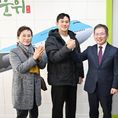 (중부시사신문) 씨름판의 살아있는 전설, '노또장(노범수가 또 장사 했다)' 노범수 선수가 군입대를 앞두고 할아버지가 거주하는 대구 군위군을 찾아 승리의 기쁨을 나눴다. 최근 의성군에서 열린 '2025 의성 천하장사 씨름 대축제'에서 통산 25번째 황소 트로피를 들어 올린 노범수는 지난 10일, 본격적인 군 복무를 앞두고 고향과도 같은 군위군을 방문해 김진열 군위군수와 면담의 시간을 가졌다. 이날 방문에는 노범수 선수의 든든한 지원군인 큰아버지 노종호 씨와 큰어머니 민순옥 씨가 동행해 그 의미를 더했다. 노범수는 군위에 거주하시는 할아버지를 뵙고 손자의 영광스러운 우승 소식을 직접 전하기 위해 방문한 것으로 알려졌다. 김진열 군위군수는 면담 자리에서 "태백급 최다 타이틀 보유자이자 씨름계의 보물인 노범수 선수가 입대 전 바쁜 일정 속에서도 군위를 찾아주어 매우 기쁘다"며 "군위에 계신 할아버지께서도 손자의 활약에 큰 자부심을 느끼실 것"이라고 격려했다. 이어 "군 생활 건강하게 잘 마치고 돌아와 다시 한번 씨름판을 호령해달라"고 응원했다. 노범수 선수는 "할아버지가 계신 군위는 늘 마음의 안식처 같