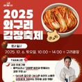 (중부시사신문) 구리시상권활성화재단은 오는 12월 6일 구리광장에서 ‘2025 와구리 김장축제’를 개최한다고 밝혔다. 이번 축제는 ‘경기도 상권 친화형 도시 조성 공모사업’ 선정으로 추진되는 ‘구리 윈터페스타’의 첫 번째 행사로, 지역 농산물 소비 촉진, 전통문화 체험, 이웃돕기 나눔 실천을 주요 가치로 삼아 시민 누구나 참여할 수 있는 겨울 축제로 마련됐다. 축제의 하이라이트인 김장 체험은 시민들이 직접 김치를 담가보는 프로그램으로 진행되며, 흑백요리사로 큰 인기를 얻고 있는 이모카세 김미령 한식 요리사의 지도로 구리시새마을회, 구리 도시공사, 무지개합창단 등 지역 자원봉사자들이 함께해 김장을 처음 접하는 시민들도 손쉽게 전통 김치를 완성할 수 있도록 도울 예정이다. 이날 담근 김치의 일부는 관내 홀로 어르신, 다문화가정 등 취약계층에 전달돼 시민이 직접 참여하는 연말 나눔 활동으로 따뜻한 의미를 더한다. 또한 축제장을 찾은 시민들을 위해 트로트 가수 태진아의 공연, 가야금 영재 조영재 & 아인스바움 윈드 챔버 연주 등 풍성한 무대 프로그램과 지역 소상공인 먹거리 부스, 다양한 체험 코너 등 볼거