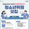 (중부시사신문) 광명시가 청소년이 직접 정책을 제안하는 청소년 정책 참여 기반을 넓힌다. 시는 오는 3월 31일까지 2026년 제3기 청소년위원회 위원 100명을 모집한다. 청소년위원회는 청소년의 시정 참여 확대와 권익 증진을 위해 운영하는 시장 직속 청소년 대표기구다. 정책 제안과 토론, 지역 현안 발굴 활동을 수행하며 청소년의 의견을 시정에 반영하는 역할을 맡는다. 임기는 오는 4월부터 2027년 3월까지다. 선발된 위원들은 정기회의와 분과 활동, 워크숍과 교육 프로그램에 참여해 지역 현안을 스스로 탐색하고 정책 대안을 제시하는 경험을 쌓는다. 또한, 정책 제안 발표회 ‘나도 시장이다’에 참여해 시정 반영 가능성이 있는 정책을 발표하며 청소년 참여 민주주의의 주체로 활동하게 된다. 모집 대상은 9세부터 18세까지의 광명시 거주 청소년 또는 지역 내 학교에 재학하거나 근로 활동을 하는 청소년이다. 선발된 위원에게는 광명시장 명의의 위촉장을 수여하고, 회의 참석 수당을 지급한다. 또 우수 위원에게는 시장상을 수여할 예정이다. 박승원 광명시장은 “청소