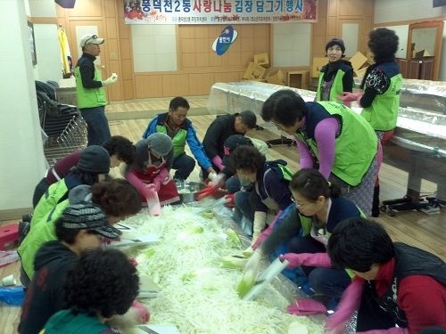 용인시 수지구 풍덕천2동 주민자치위원회(위원장 장영호)는 지난 9일 주민센터에서 풍덕천2동 단체 회원들과 함께 관내 저소득층 및 어르신들이 겨울을 따뜻하게 보낼 수 있도록 ‘사랑나눔 김장담그기’행사를 가졌다.
