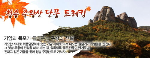 문의 : 주왕산국립공원 054-873-0014/5 http://juwang.knps.or.kr/main/main_park_juwang.do#3 여행정보 1.찾아가는길 * 자가운전 중앙고속도로→서안동IC→34번 국도(영덕 방면)→진안→31번 국도(청송 방면)→청운동삼거리→914번 지방도→주왕산탐방안내소<4시간 소요> * 대중교통 서울→주왕산 동서울터미널(1688-5979)에서 매일 6회(06:30, 08:40, 10:20, 12:00, 15:10, 16:40) 운행. 4시간30분 소요, 요금 2만4000원. 부산→주왕산 동부시외버스터미널(1688-9969)에서 매일 2회(07:40, 13:20) 운행. 3시간40분 소요, 요금 2만원. 대구→주왕산 동부터미널(053-756-0017)에서 매일 2회(07:30, 13:30) 운행. 2시간50분 소요, 요금 1만6300원. 안동→주왕산 안동버스터미널(1688-8228)에서 매일 6회(09:30, 11:45, 13:27, 15:03, 18:16, 19:45) 운행. 1시간30분 소요, 요금 7400원. 2.맛집 소슬자연빛깔 파천면 덕천리 / 054-873-6300 달기약수닭백숙 청송읍 부곡리 / 054-873-2351 경남식당 진보면 진안리 / 054-872-9951 주왕산 꽃돌식당 부동면 상의리 / 054-873-0900 청솔식 부동면 상의리 / 054-873-8808 3.숙소 주왕산 온천관광호텔 청송읍 월막리 / 054-874-7000 금강장여관 청송읍 월막리 / 054-874-2121 송소고택 파천면 덕천리 / 054-874-6556 황토구들방 청송읍 금곡리 / 010-9435-****