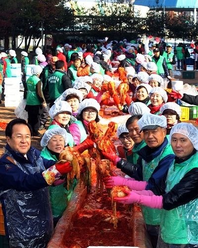 용인시새마을회(회장 정기종) 주최로 열린 이날 행사에 김학규 용인시장을 비롯해 새마을지도자 250여명이 참여해 나눔과 화합의 장을 만들었다. 이날 참가자들은 배추 2800포기로 600상자의 김장김치(10㎏/상자)를 만들어 관내 독거노인.한부모가정,차상위계층,급식소 등에 전했다.