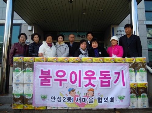 한편, 안성2동 새마을지도자협의회는 노인 소외계층 가정방문과 위문품 전달로 어려운 이웃과 함께 하는 후원과 시민참여를 유도하여「시민과 함께 행복한 맞춤도시 안성」구현에 앞장서고 있다.