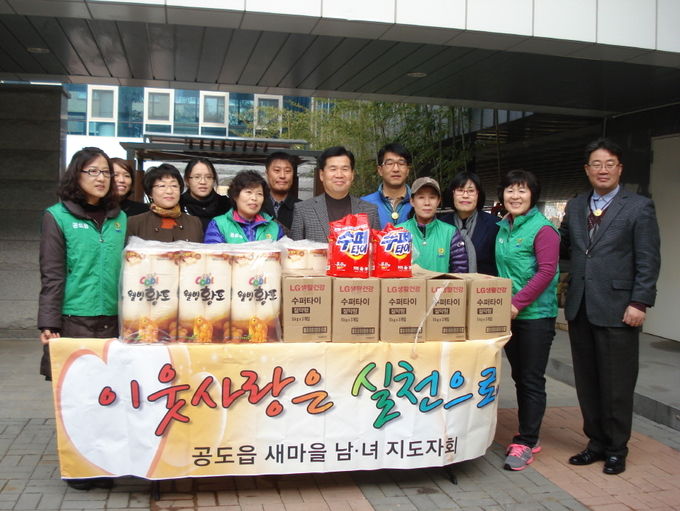 안성시 공도읍 새마을부녀회에서는 연말을 맞이하여 지난 11월 29일 가정용 휴지(25박스)와 세제(25개)를 어렵게 사는 독거노인 25명에게 전달해 이웃과의 나눔을 실천했다.