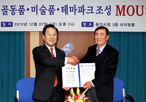 이날 김학규 용인시장과 유병열 (주)유성텔레콤 대표 등 관계자들은 용인시 처인구 양지면 양지리 222-2번지 일대에 30,690㎡의 부지에 박물관 건축 및 골동품점 유치, 지역주민 책임고용 및 생산품 소비 촉진, 행정 지원 등을 주요 골자로 하는 협약 내용을 준수하기로 하고 양해각서를 체결했다.