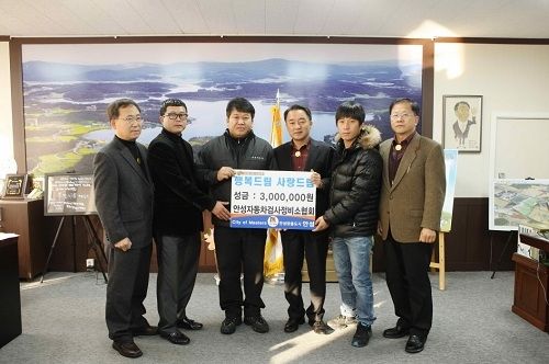 안성자동차검사정비소협회 관계자는 12월 6일 안성시를 방문하여 안성관내에 소외되고 어려운 이웃들에게 전달해 달라며, 성금 3백만원을 전달했다.
