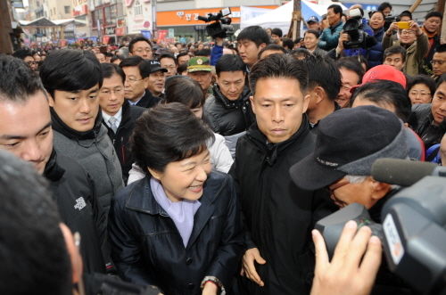 그러나 최근 여론조사 추이분석에서 20대의 보수화 경향은 급속히 진행돼 가는 것으로 나타났다. 지난달 말 여론조사(한길리서치)에 따르면 20대층의 박 후보 지지율은 40.3%로 30대의 26.9%보다 13.4%p나 더 많았다. 박 후보의 ‘20대 끌어안기’가 주효했음이 드러났다.