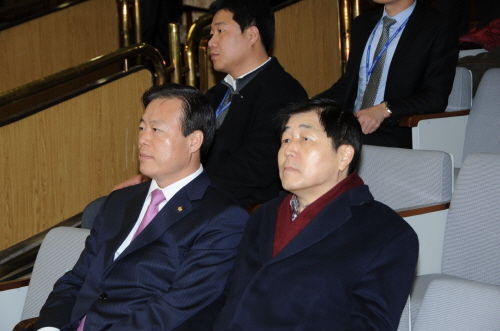검찰 후배인 이한성.장윤석 의원이 정홍원 후보자의 청문회를 관람했다. | |