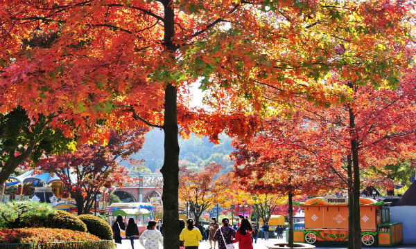 용인에버랜드의 단풍은 10월20일~30일 사이 절정에 이를 것으로, ▶은행, ▶단풍, ▶느티, ▶벗, ▶대왕참나무 등 10여종 수 천 그루의 나뭇잎들이 노랗고 빨갛게 물들어 깊어 가는 가을의 정취를 만끽하기에 제격이다.
