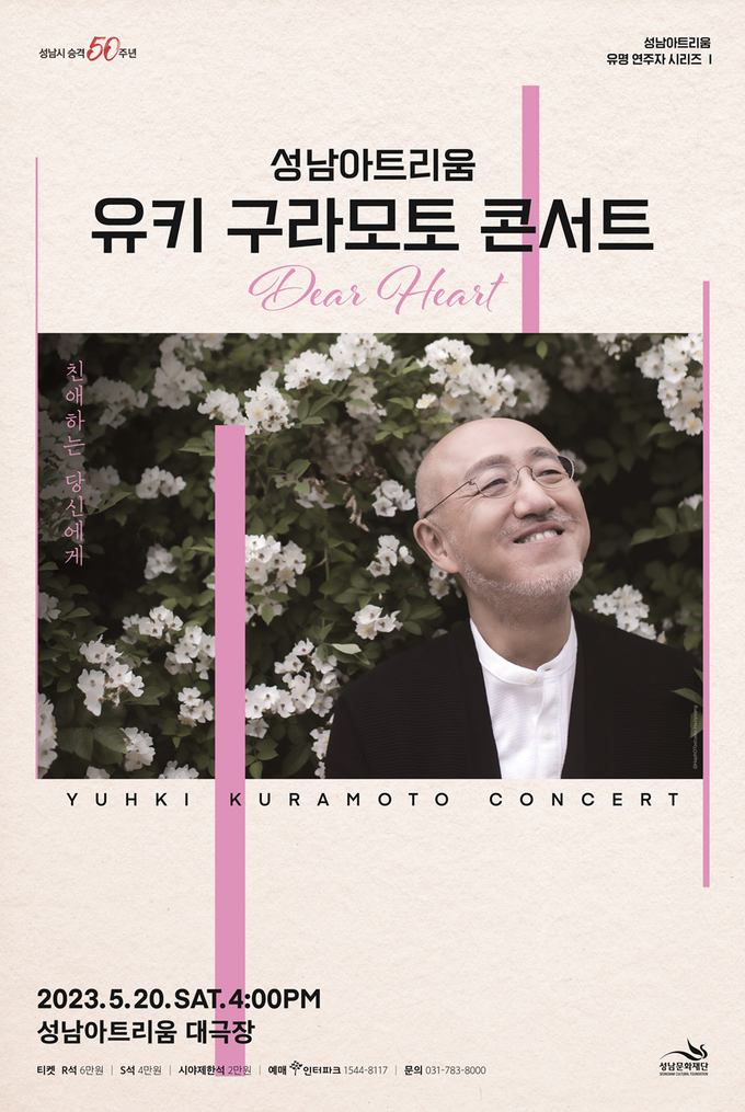 공연은 5월 20일(토) 오후 4시, 성남아트리움 대극장에서 진행되며 티켓은 R석 6만원, S석 4만원, 시야제한석은 2만원이다.