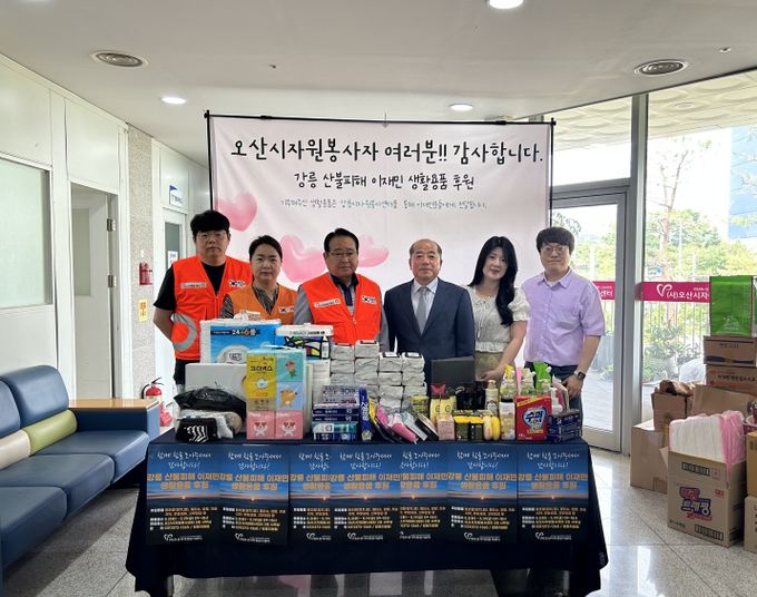이번 물품은 오산문화재단 임직원들이 이번 산불로 어려움을 겪고 있는 이재민들에게 도움이 되기를 바라는 마음으로 칫솔, 치약, 휴지, 물티슈, 세제 등을 모아 마련했다.