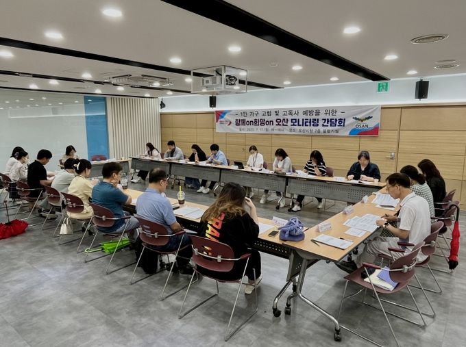 이번 간담회는 1인 가구 고립 및 고독사 예방을 위한 ‘함께On 희망On 오산’사업 운영상황을 중간 점검하고, 건의 사항이나 업무 노하우 공유 등을 통해 1인가구 고립 및 고독사 예방사업의 체계적인 운영방안을 강구하고자 마련됐다.