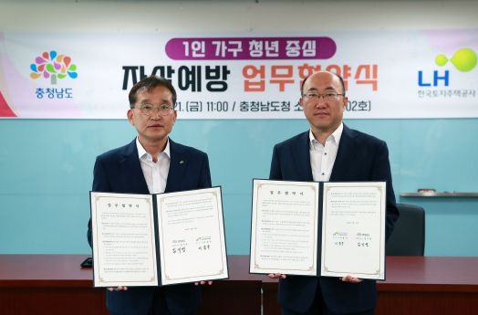 (중부시사신문) 충남도는 21일 도청에서 한국토지주택공사(LH) 대전충남본부와 1인 가구 청년 중심 자살예방사업 추진을 위한 업무협약을 체결했다.